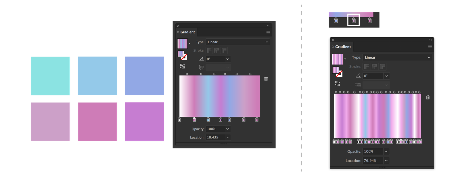 เพิ่มจำนวนสี (Color Stop) ด้วยการกด Option (Mac) / Alt (Windows) ค้างไว้แล้วแดรกส์เมาส์ลาก Color stop ไปอีกตำแหน่ง เป็นการ Copy Color stops
