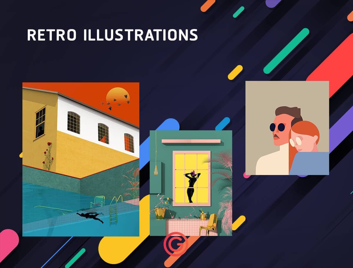 เทรนด์ในการออกแบบบางทีก็ย้อนกลับไปใช้กราฟิกในรูปแบบเก่าๆ มาใช้งานกันอยู่เรือยๆ ภาพแบบ retro illustrations ก็เช่นกัน การใช้ลายกราฟิกที่เรียบง่ายมีการใช้สีสันที่โดดเด่นและเด่นชัดทำให้กราฟิกแบบ retro illustrations ยังคงได้รับความนิยมอย่างต่อเนื่องจึงจัดเป็นแนวทางออกแบบ 2018 ที่ใช้งานได้แน่นอน