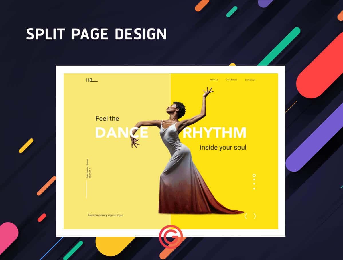 สำหรับ Split page คือการพัฒนาไปอีกขั้นของภาพแบบ Hero image ที่มักจะใช้ภาพเดียวหรือองค์ประกอบเดียวเป็นจุดใหญ่ แต่ Split page ช่วยเพิ่มลูกเล่นและองค์ประกอบเพื่อเพิ่มความสมบูรณ์แบบให้กับงานออกแบบ