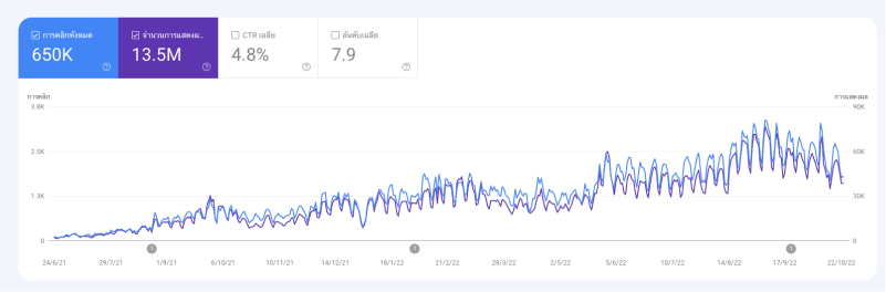 ตัวอย่างสถิติจำนวนผู้ใช้งานเว็บไซต์แบบ Organic Traffic